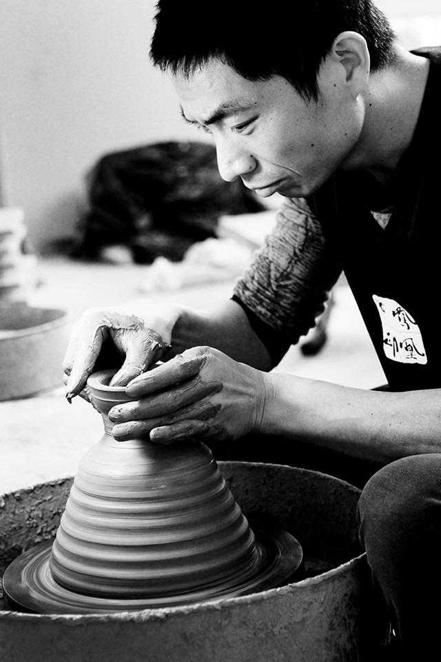 素手做坯,洗尽铅华,那灯光下转动的手腕,把时间揉碎融进泥土的气味里。
