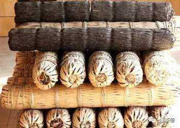 将蒸透的茶叶装入衬竹箴的模具中紧压形成似柱子的形状。如湖南安化千两茶。
