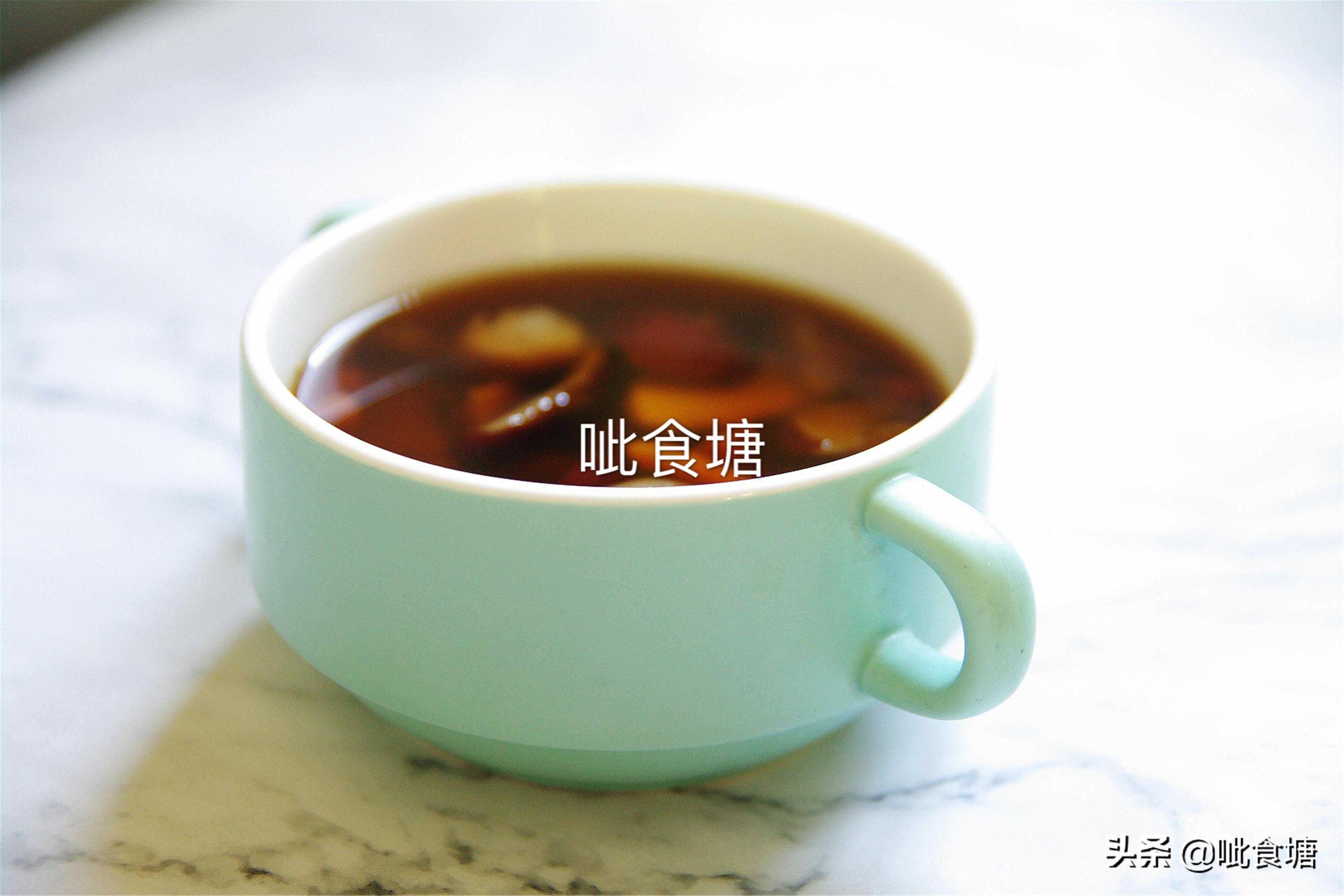 5、加入红糖块,或者把红糖粒放在小碗或者杯子里。倒入煮好的姜枣茶就可以享用了。