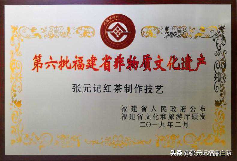 2019年“张元记红茶制作技艺”被福建省人民政府评定为第六批福建省非物质文化遗产。
