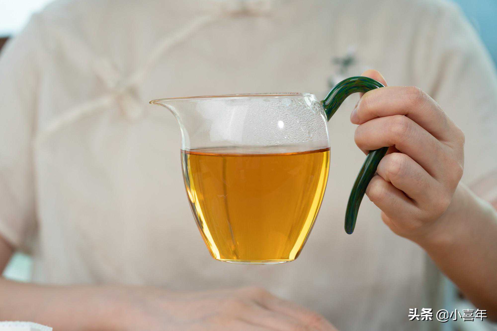 第四步,拿出茶包放在茶托上,杯中的茶汤橙黄明亮,十分清透。