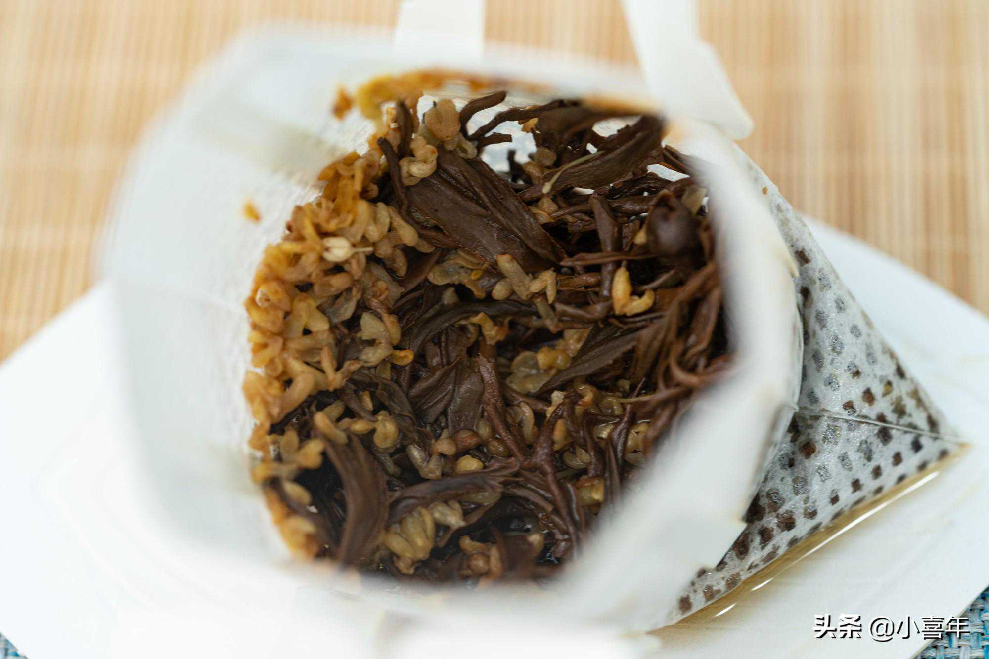 其实在这个冲泡品饮的过程中,可以很明显地感觉到,香气出来很快,接着是桂花带来的口感,然后是茶的味道,这主要和桂花还有红茶的物质浸出快慢有关。