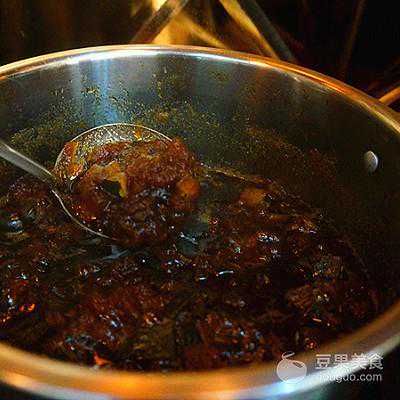 8、其间可以用勺子挤压,这样才能彻底挤汁儿,将汤汁倒入消毒过的密封瓶中,冰箱冷藏保存即可